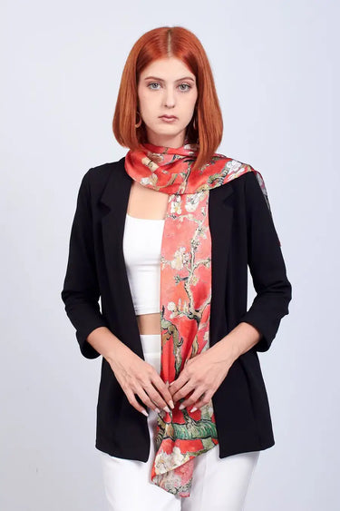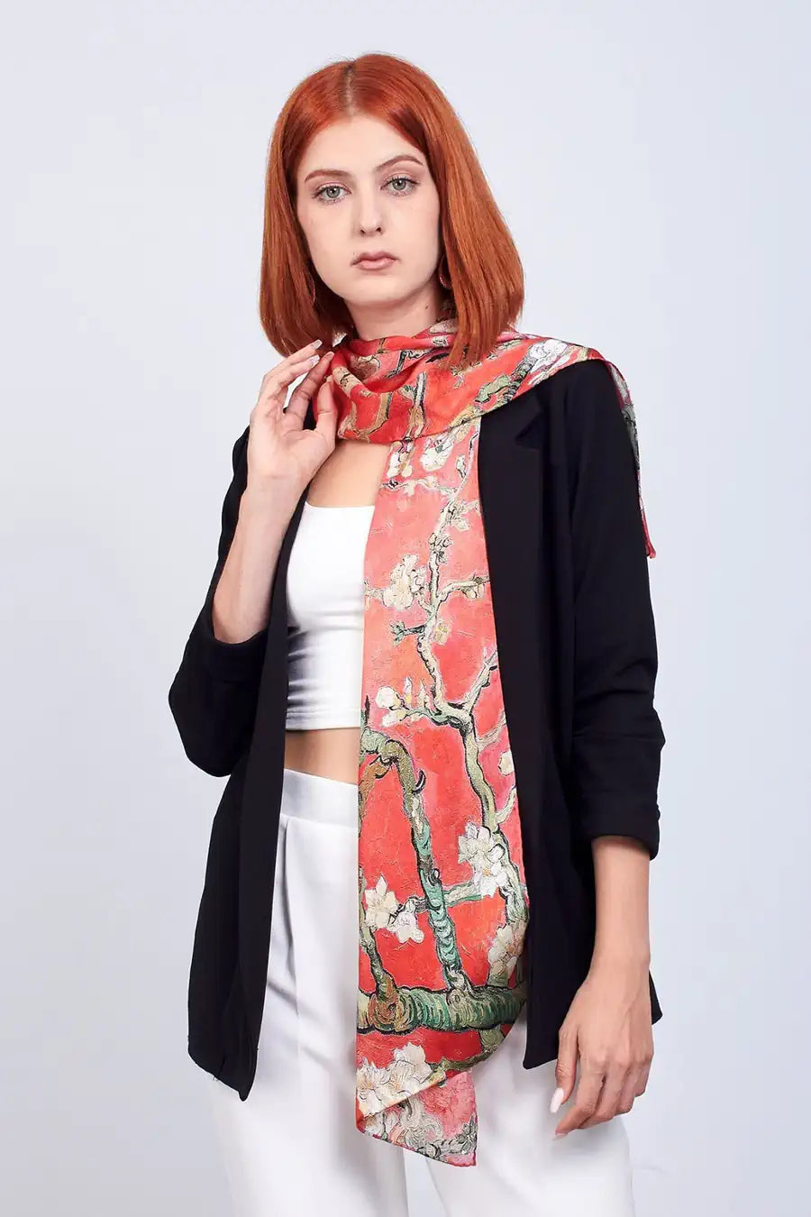 %100 Ipek Fular | Gold | 35x160 Cm | Van Gogh Badem Ağacı |